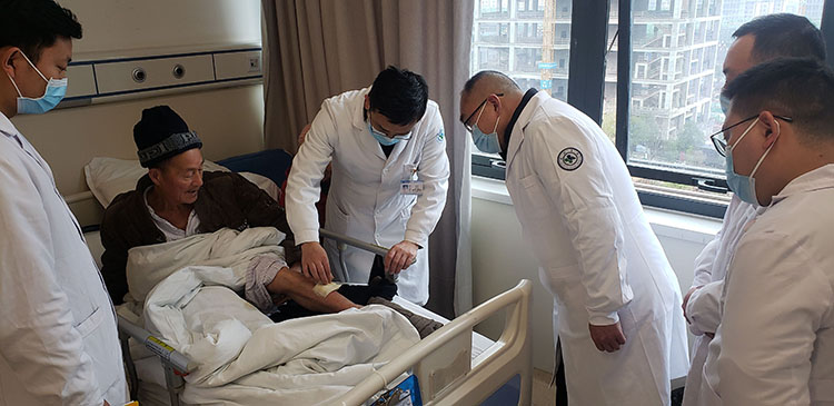 2023年2月24日,應(yīng)商洛市中醫(yī)醫(yī)院邀請(qǐng),《中國(guó)燒傷創(chuàng)瘍雜志》總編、北京榮祥再生醫(yī)學(xué)研究所副所長(zhǎng)、中國(guó)中西醫(yī)結(jié)合學(xué)會(huì)燒傷專業(yè)委員會(huì)秘書長(zhǎng)、北京市中西醫(yī)結(jié)合學(xué)會(huì)燒傷專業(yè)委員會(huì)副主任委員方進(jìn)勇,中國(guó)中西醫(yī)結(jié)合學(xué)會(huì)燒傷專業(yè)委員會(huì)醫(yī)療部副主任宋小紅,陜西省中西醫(yī)結(jié)合學(xué)會(huì)燒傷與創(chuàng)面修復(fù)專委會(huì)常務(wù)秘書長(zhǎng)劉華主任,前往醫(yī)院技術(shù)指導(dǎo)交流典型病例,李主任、張主任陪同專家到科室查房會(huì)診大面積燒傷和糖尿病足患者,確定治療方案。