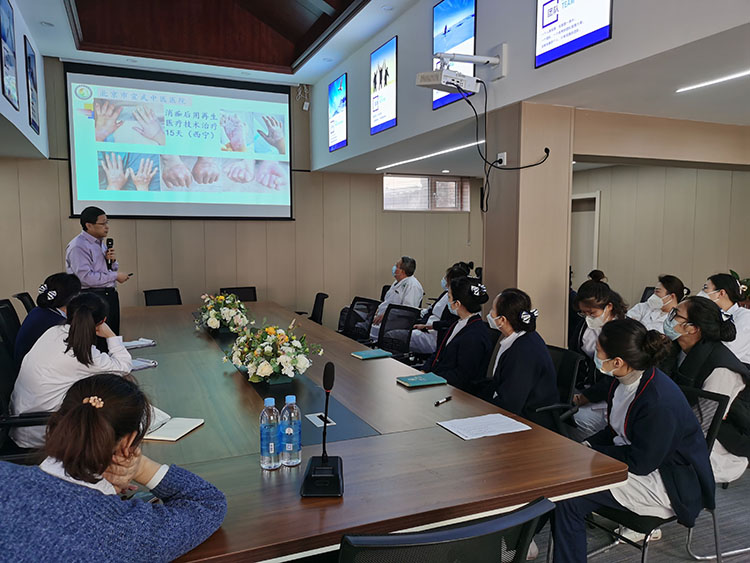 重慶市第十三人民醫(yī)院就創(chuàng)面修復(fù)??频拇蛟炫c綦江區(qū)人民醫(yī)院進(jìn)行交流