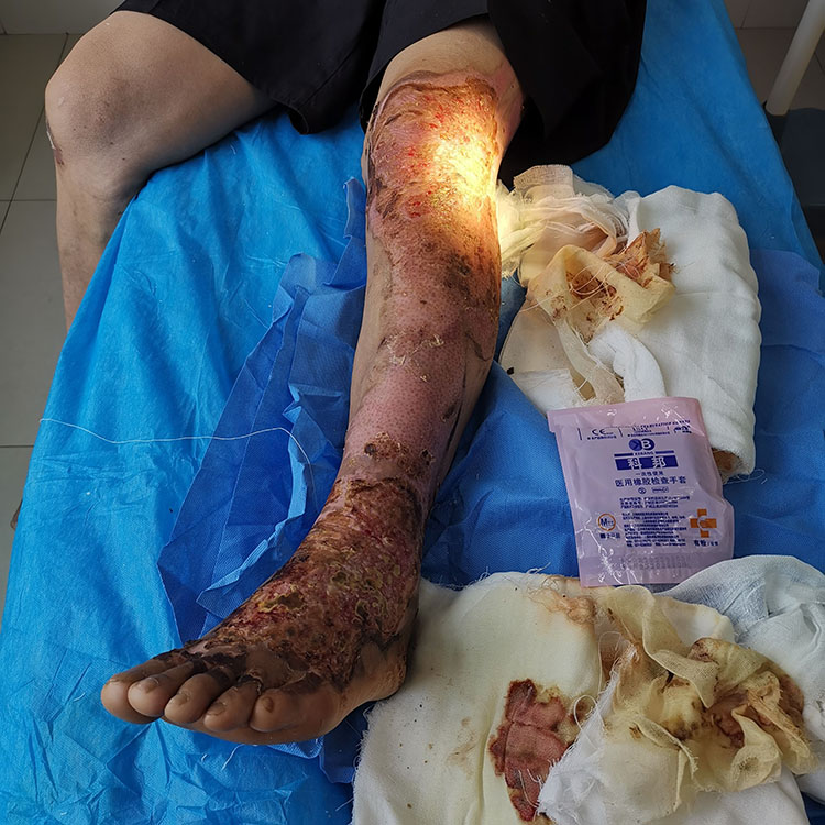 2023年3月28日,應(yīng)蕪湖市第一人民醫(yī)院燒傷科梁其國主任邀請,中國中西醫(yī)結(jié)合學(xué)會燒傷專業(yè)委員會醫(yī)療部張強(qiáng)主任會診幾例慢創(chuàng)病人,張主任邊換藥邊講解換藥技巧及要點(diǎn),后期還給科室醫(yī)生培訓(xùn)了換藥流程,得到大家的高度認(rèn)可!