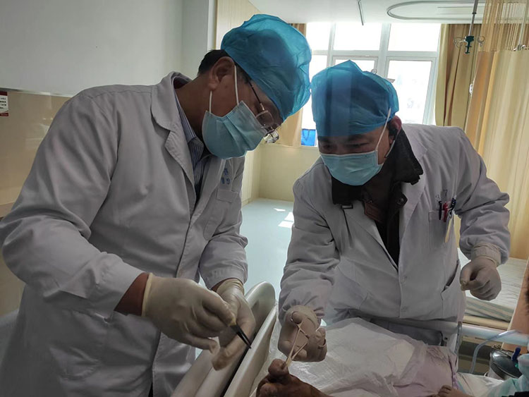 4月6日,應(yīng)科左后旗醫(yī)院邀請(qǐng),北京宣武中醫(yī)院張勇主任來到在美麗的科爾沁大草原,在醫(yī)院骨外科進(jìn)行再生醫(yī)療技術(shù)學(xué)術(shù)交流活動(dòng)。學(xué)術(shù)交流得到了醫(yī)院領(lǐng)導(dǎo)班子大力支持,會(huì)議由主管院長張愛民院長主持??剖抑魅巍⑨t(yī)生對(duì)再生醫(yī)療技術(shù)臨床療效給予高度認(rèn)可和評(píng)價(jià)!學(xué)術(shù)交流后,張勇主任和醫(yī)院領(lǐng)導(dǎo)一起到科室,為幾例慢創(chuàng)病人會(huì)診和指導(dǎo),張主任親自操作示范換藥,講解規(guī)范換藥細(xì)節(jié),旨在提升慢創(chuàng)救治能力,充分發(fā)揮再生醫(yī)療技術(shù)創(chuàng)面修復(fù)的示范引領(lǐng)作用,最大限度降低慢創(chuàng)患者的死亡率和致殘率,確保慢性患者得到高效的救治。
