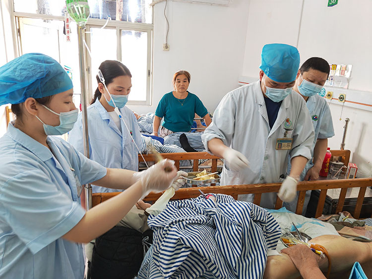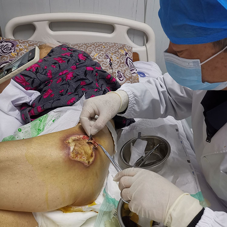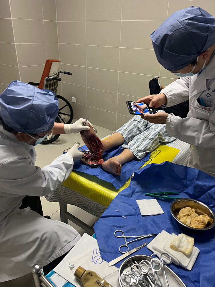 2023年4月24日,應溧水區(qū)中醫(yī)院急會診之邀,再生醫(yī)學知名專家、《中國燒傷創(chuàng)瘍雜志》常務編委趙瑞慶主任,前往該院會診了一例五級糖尿病患者,即刻行足底切開引流術(shù)。事后又在科室進行了再生醫(yī)療技術(shù)治療糖尿病足潰瘍技術(shù)培訓,特別強調(diào)了治療過程中的注意要點事項,大家一致表示備受啟發(fā),受益匪淺。
