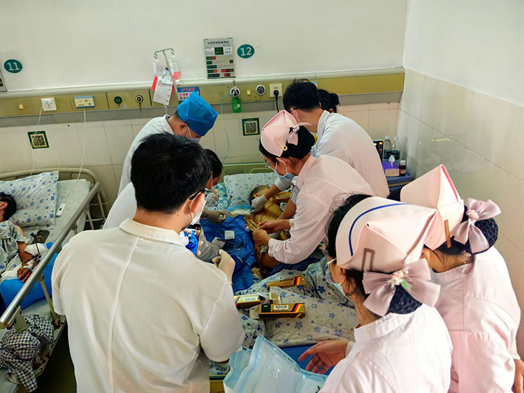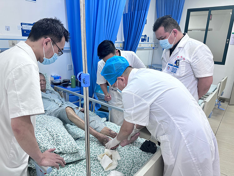 10月29日,應(yīng)九江學(xué)院附屬醫(yī)院創(chuàng)面修復(fù)科余東啟主任邀請,中國中西醫(yī)結(jié)合學(xué)會燒傷專業(yè)委員會臨床部、《中國燒傷創(chuàng)瘍雜志》編委、燒傷創(chuàng)瘍再生醫(yī)療技術(shù)臨床專家金黨軍主任前往科室進行學(xué)術(shù)交流,并會診了兩名慢創(chuàng)患者,親自為患者清創(chuàng)換藥,贏得了醫(yī)護人員和患者家屬的高度贊許。