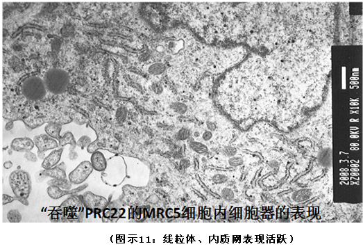 生命活動(dòng)和正常細(xì)胞相反,再生物質(zhì)進(jìn)入癌細(xì)胞后,線粒體開始“小腫”(‘腫’是線粒體功能降低的主要表現(xiàn)),而后細(xì)胞外面的“腿”開始逐漸消失(詳見圖示15)