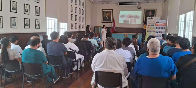在利馬、特魯希略和阿雷基帕等地還舉辦了一系列技術(shù)研討會(huì)。多名長(zhǎng)期應(yīng)用再生醫(yī)學(xué)技術(shù)的資深醫(yī)生參與了此次再生技術(shù)專業(yè)交流活動(dòng)。美寶國際技術(shù)部主任徐巍巍系統(tǒng)介紹了再生醫(yī)學(xué)技術(shù)的三種主要標(biāo)準(zhǔn)換藥方式,對(duì)醫(yī)護(hù)人員運(yùn)用再生醫(yī)療技術(shù)處理創(chuàng)面的方法進(jìn)行了系統(tǒng)性規(guī)范,從而確保技術(shù)應(yīng)用更加精準(zhǔn)、高效。