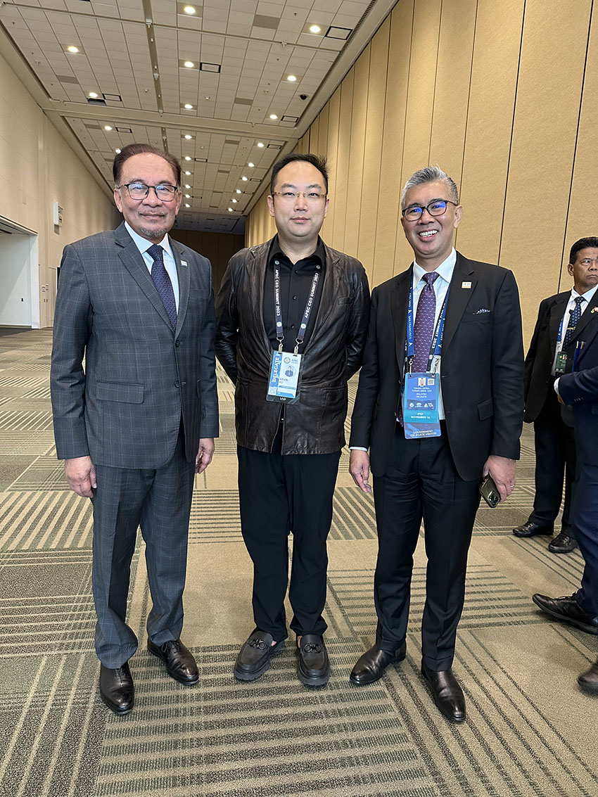 馬來(lái)西亞首相安華(左一)、APEC籌委會(huì)聯(lián)合主席徐鵬(中)、馬來(lái)西亞商務(wù)部長(zhǎng)TENGKU ZAFRUL TENGKU ABDUL AZIZ(右一)