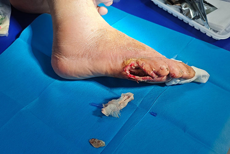 應(yīng)河北省退役軍人總醫(yī)院邀請,《中國燒傷創(chuàng)瘍雜志》常務(wù)編委、燒傷創(chuàng)瘍再生醫(yī)療技術(shù)臨床專家趙瑞慶教授于2月9日在該院會診10例慢創(chuàng)患者(包括2例糖尿病足潰瘍,其中1例為五級;8例壓瘡,多為多部位壓瘡,其中1例合并雙下肢股骨干骨折)。在總結(jié)環(huán)節(jié),趙教授為每例患者制定了個性化治療方案,受到當(dāng)?shù)蒯t(yī)務(wù)人員的高度評價。