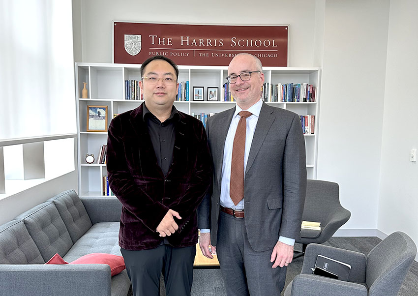 當(dāng)?shù)貢r(shí)間4月10日,美寶集團(tuán)董事局主席徐鵬應(yīng)邀訪(fǎng)問(wèn)芝加哥大學(xué)。此次訪(fǎng)問(wèn),不僅是雙方長(zhǎng)期以來(lái)伙伴關(guān)系構(gòu)建的進(jìn)一步深入,更是對(duì)未來(lái)合作藍(lán)圖的深度描繪。徐鵬主席與芝加哥大學(xué)哈里斯公共政策學(xué)院院長(zhǎng)Ethan Bueno及副院長(zhǎng)Rena Dascal進(jìn)行了會(huì)面,共同探討了雙方合作的廣闊領(lǐng)域和進(jìn)一步發(fā)展的方向,特別是圍繞APEC區(qū)域?qū)W者和研究項(xiàng)目的深度合作。