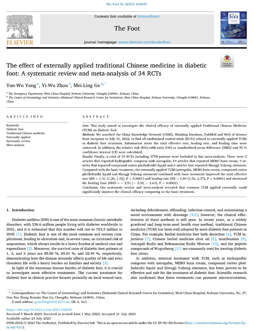 MEBO等中藥開(kāi)啟糖尿病足治療新篇章:《外用中藥對(duì)糖尿病足的治療效果:34項(xiàng)隨機(jī)對(duì)照試驗(yàn)的系統(tǒng)評(píng)價(jià)與薈萃分析》