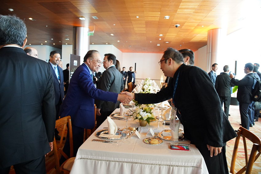 11月14日中午,美寶集團(tuán)董事局主席、APEC2023籌委會主席徐鵬受邀與馬來西亞首相安華·易卜拉欣共進(jìn)午餐。席間,徐鵬主席向安華首相提出了一個(gè)富有前瞻性的策略,旨在通過構(gòu)建亞太經(jīng)合組織與東盟會議間相互兼容的合作機(jī)制,形成共贏格局。雙方就此展開了進(jìn)一步討論。