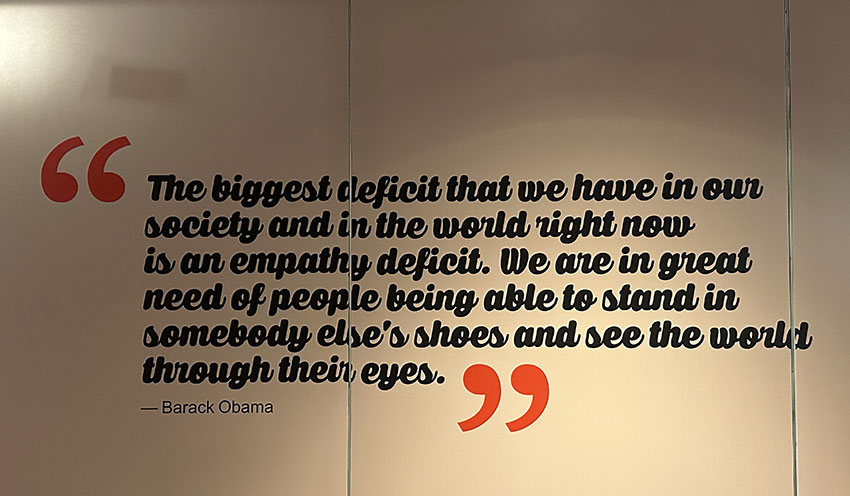 “美國燒傷協(xié)會--鞋子里的一英里”活動是同理心博物館的一個特別項目,通過讓參與者穿上別人的鞋子走幾分鐘,并同時用耳機(jī)聽一段燒傷幸存者的故事錄音,獲取同理心和洞察力。館中刻有的美國前總統(tǒng)奧巴馬曾經(jīng)說過的——我們當(dāng)前社會最大的赤字就是同理心赤字。我們非常需要人們能夠站在別人的立場上,通過他們的眼睛看世界——正是此次活動核心價值觀的體現(xiàn)。