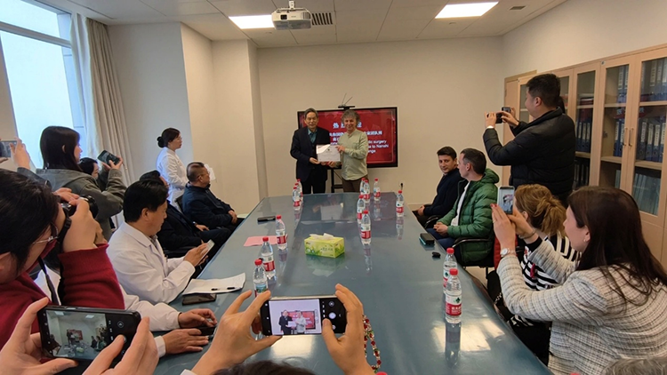 次日上午,保加利亞代表團(tuán)走進(jìn)手術(shù)室,全程觀摩燒傷與創(chuàng)面患者的相關(guān)手術(shù),近距離學(xué)習(xí)手術(shù)策略,現(xiàn)場與醫(yī)院醫(yī)護(hù)人員實時互動,針對手術(shù)細(xì)節(jié)、術(shù)后護(hù)理等問題展開深入咨詢交流,收獲頗豐?;顒游猜暎详栯娨暸_對趙俊祥書記以及保加利亞代表團(tuán)代表進(jìn)行了采訪。最后,南石醫(yī)院為代表團(tuán)舉辦了隆重的結(jié)業(yè)儀式,趙俊祥書記在閉幕講話中表示,此次活動鞏固了中保友誼,促進(jìn)了再生醫(yī)學(xué)技術(shù)的共同進(jìn)步,期待以此次交流為契機(jī),深化雙方合作、互學(xué)互鑒。保加利亞代表感謝醫(yī)院的精心安排與無私分享,表示將把所學(xué)經(jīng)驗帶回國內(nèi),助力兩國醫(yī)療合作不斷深化。至此,本次跨國學(xué)術(shù)交流圓滿結(jié)束。