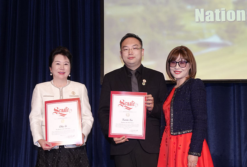 論壇后,ISRMWR組織了2024年國際再生醫(yī)學日招待晚宴,前核桃市市長蘇王秀蘭代表加州參議員Bob J. Archuleta向ISRMWR主席、美寶集團董事局主席徐鵬以及徐榮祥基金會主席、美寶集團董事局李俐頒發(fā)了榮譽證書,證書中祝賀美寶集團獲得ISRMWR的特別認可,并預祝集團在今后的努力中取得更大的成功。Walnut市議員Allen Wu向徐榮祥基金會頒發(fā)證書,以此紀念2024年國際再生醫(yī)學日晚宴并慶祝大會圓滿成功。