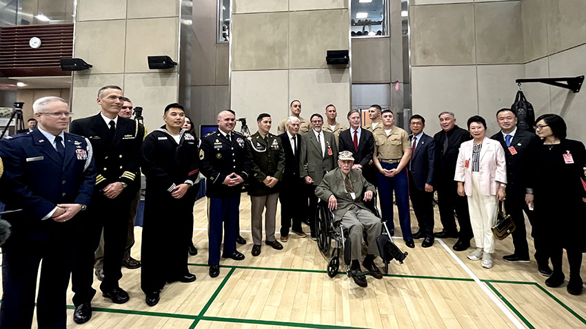 美寶集團(tuán)董事局李俐作為美中航空遺產(chǎn)基金會榮譽(yù)副主席、美國第14航空隊訪華代表團(tuán)名譽(yù)團(tuán)長,與該航空隊老兵103歲的哈里·莫耶、98歲的梅爾文·麥克馬倫,以及第14航空隊英雄后人、美中航空遺產(chǎn)基金會主席格林等30余人參加了本次活動。
