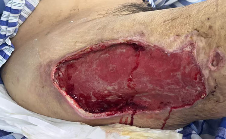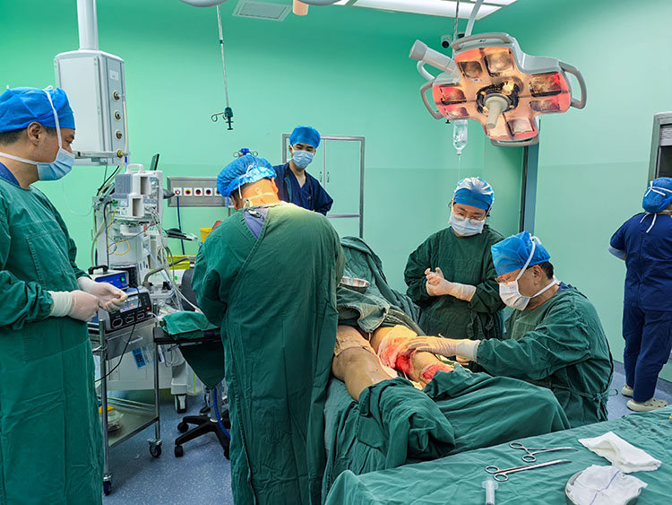 11月11日,北京榮祥再生醫(yī)學(xué)研究所研究員、《中國燒傷創(chuàng)瘍雜志》常務(wù)編委、燒傷創(chuàng)瘍再生醫(yī)療技術(shù)臨床專家趙瑞慶教授,到長治市人民醫(yī)院會診手術(shù)創(chuàng)傷患者。長治某洗煤廠裝載機(jī)車禍雙下肢嚴(yán)重碾軋傷患者,經(jīng)過積極的抗感染、創(chuàng)面通過再生醫(yī)療技術(shù)聯(lián)合多技術(shù)處理準(zhǔn)備,達(dá)到手術(shù)要求,趙瑞慶教授會同當(dāng)?shù)蒯t(yī)務(wù)人員李學(xué)雷主任團(tuán)隊(duì)等,在全麻下行“雙下肢嚴(yán)重皮膚缺損創(chuàng)面修復(fù)手術(shù)”術(shù)中順利,出血不多,病人安返病區(qū)。術(shù)后又制定了嚴(yán)格的治療措施。