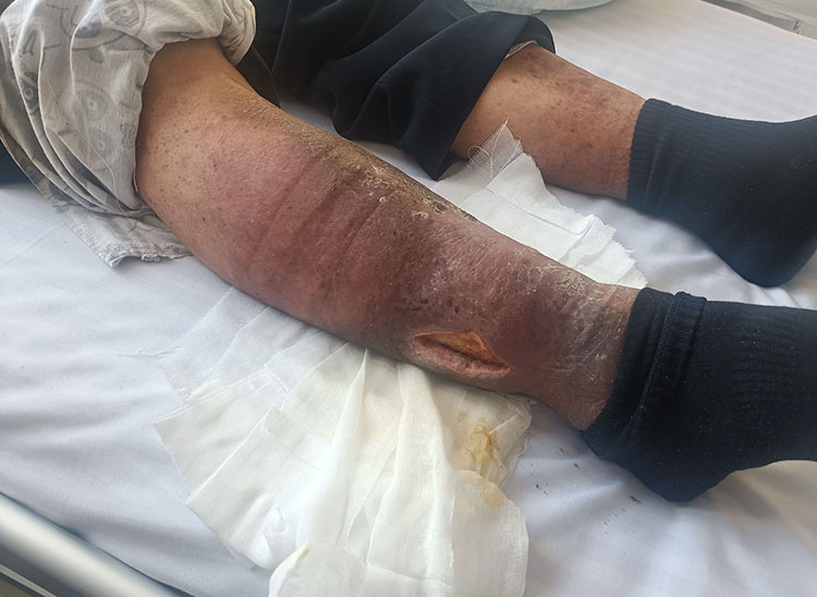 11月20日,《中國燒傷創(chuàng)瘍雜志》常務(wù)編委、燒傷創(chuàng)瘍再生醫(yī)療技術(shù)臨床專家趙瑞慶,應(yīng)聞喜縣中醫(yī)醫(yī)院、臨猗縣楚候鄉(xiāng)衛(wèi)生院之邀,先后會診二例患者,一例為右髖關(guān)節(jié)處皮膚壓瘡合并竇道2個月,一例為右上肢沸油燙傷。趙教授針對患者的不同病情采取不同的治療方法,受到當(dāng)?shù)蒯t(yī)務(wù)人員家屬的稱贊!