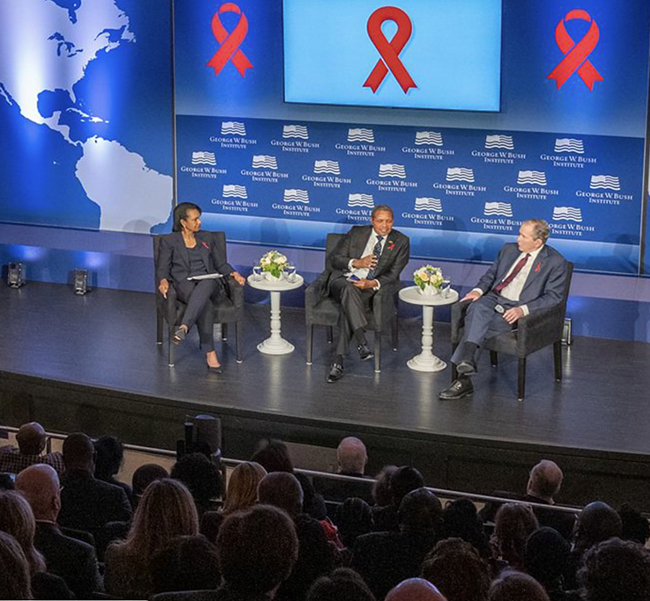 美國第43任總統(tǒng)喬治·W·布什,坦桑尼亞聯(lián)合共和國前總統(tǒng)Jakaya Mrisho Kikwete博士,喬治·W·布什總統(tǒng)中心總裁兼首席執(zhí)行官Ken Hersh以及比爾·蓋茨等防治艾滋病公益事業(yè)的重要參與者和機構(gòu)的兩百余人出席了此次大會。