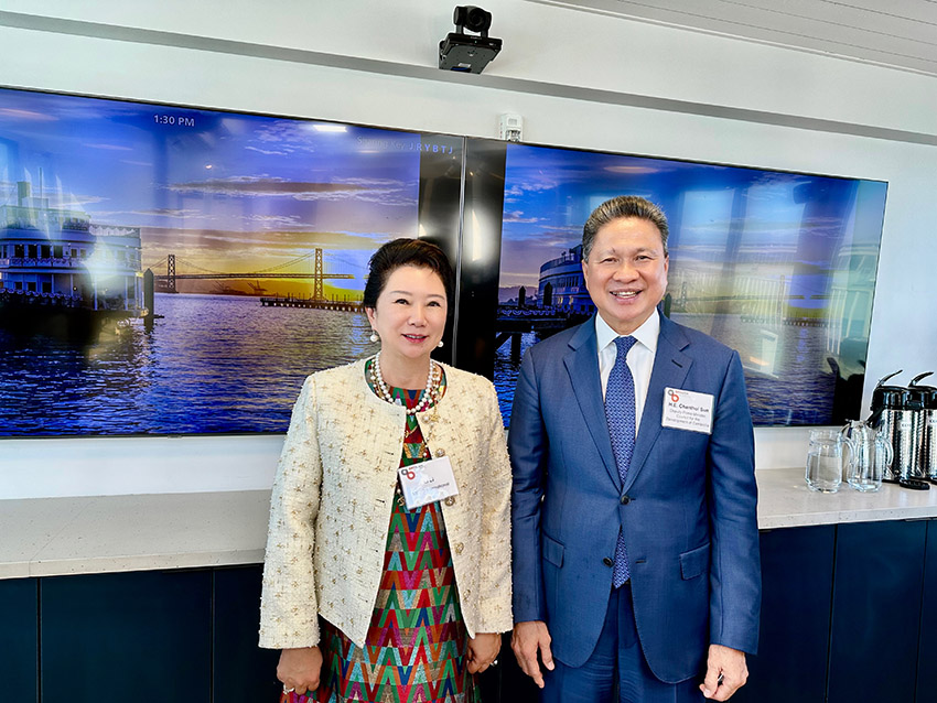 2024年9月23日正午時分,加州灣區(qū)委員會在位于其總部克拉馬斯號(Klamath)頂層美寶花園的主會議室內(nèi),以一場溫馨而莊重的午餐會,熱情接待了柬埔寨副首相孫占托閣下率領(lǐng)的代表團一行。美寶集團董事局李俐代表董事長徐鵬(灣區(qū)委員會執(zhí)行董事兼國際委員會主席)與灣區(qū)委員會經(jīng)濟研究院院長肖恩·倫道夫作為東道主共同主持接待了代表團一行,展現(xiàn)了灣區(qū)委員會對國際伙伴關(guān)系的重視與期待。