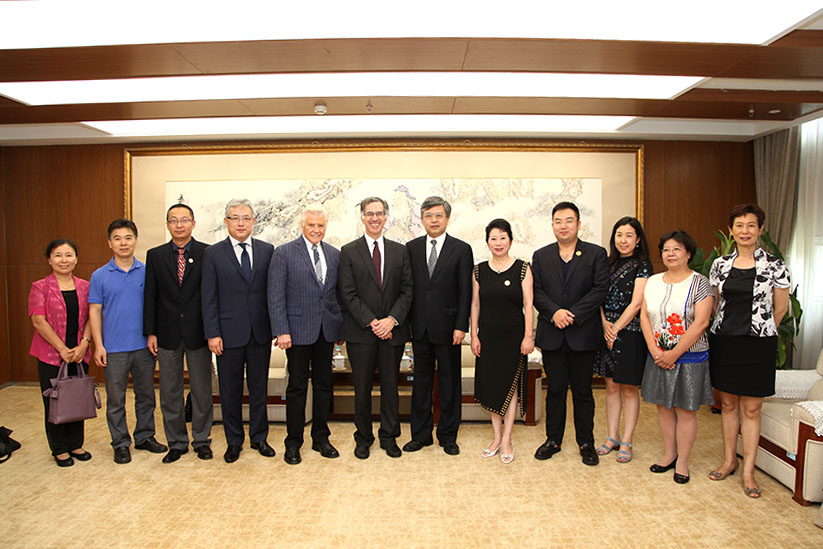 2017年8月18日,美寶集團董事局主席徐鵬、副主席李俐,美國醫(yī)學(xué)科學(xué)院院士、哈佛大學(xué)外科教授、哈佛大學(xué)醫(yī)學(xué)院BIDMC徐榮祥再生治療中心董事Eliot Chaikof博士及美國南加州大學(xué)徐榮祥再生生命科學(xué)研究中心主任George Shannon博士一行在天津南開大學(xué)與南開大學(xué)校長龔克進行會晤,各方就學(xué)校建設(shè)、創(chuàng)新創(chuàng)業(yè)、學(xué)術(shù)研究與合作、教育合作等領(lǐng)域展開交流。