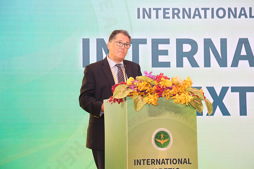 哈佛大學(xué)醫(yī)學(xué)院教授、BIDMC徐榮祥再生治療中心主任阿里斯蒂迪斯·維維斯作為此次大會主席致辭,他對歷經(jīng)三年疫情在泰國舉辦此次學(xué)術(shù)會議感到由衷喜悅,并期待通過2023年國際糖尿病下肢病變會議的召開能給與會者帶來一些新的啟發(fā)和想法。作為一所享有盛譽(yù)的醫(yī)學(xué)研究機(jī)構(gòu),徐榮祥再生治療中心一直致力于推動再生醫(yī)學(xué)和創(chuàng)面修復(fù)領(lǐng)域的科研與創(chuàng)新,還通過資源資助、培訓(xùn)和支持發(fā)展中國家建立足病學(xué)科和創(chuàng)面治療中心。