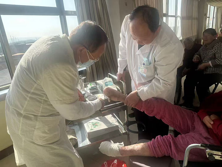 1月7日,應(yīng)玉璧敬老院邀請(qǐng),《中國(guó)燒傷創(chuàng)瘍雜志》常務(wù)編委、燒傷創(chuàng)瘍?cè)偕t(yī)療技術(shù)臨床專家趙瑞慶教授在該院會(huì)診兩例高齡慢創(chuàng)患者(一例雙足部壓瘡,一例足跟部壓瘡),并向當(dāng)?shù)蒯t(yī)務(wù)人員詳細(xì)說(shuō)明了后續(xù)治療注意事項(xiàng)。