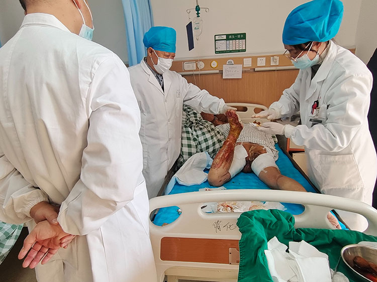 1月6日,應(yīng)新絳縣人民醫(yī)院外科急會(huì)診邀請(qǐng),《中國(guó)燒傷創(chuàng)瘍雜志》常務(wù)編委、燒傷創(chuàng)瘍?cè)偕t(yī)療技術(shù)臨床專家趙瑞慶教授前往該院會(huì)診一例右前臂沸水燙傷患者,現(xiàn)場(chǎng)進(jìn)行創(chuàng)面處置并制定后續(xù)治療計(jì)劃,詳細(xì)講解了相關(guān)注意事項(xiàng)。