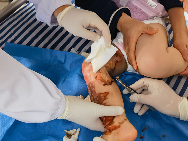 11月29日,《中國燒傷創(chuàng)瘍雜志》編委、燒傷創(chuàng)瘍再生醫(yī)療技術(shù)臨床專家張強教授應淮南新華醫(yī)療集團北方醫(yī)院邀請,對該院一例兩歲多的右下肢燙傷患兒進行會診和換藥處理,受到醫(yī)患雙方的一致好評!