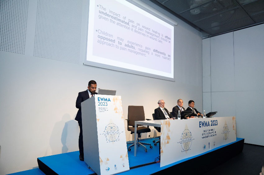 研討會首位講者是馬來西亞Raja Perempuan Zainab II醫(yī)院的創(chuàng)面管理科主任Mohd Zurairie,他以“提高小兒外傷創(chuàng)面治療體驗:在治療中減少疼痛的策略”為主題發(fā)表了演講,深入淺出地介紹了再生醫(yī)療技術減輕疼痛的機制與作用。