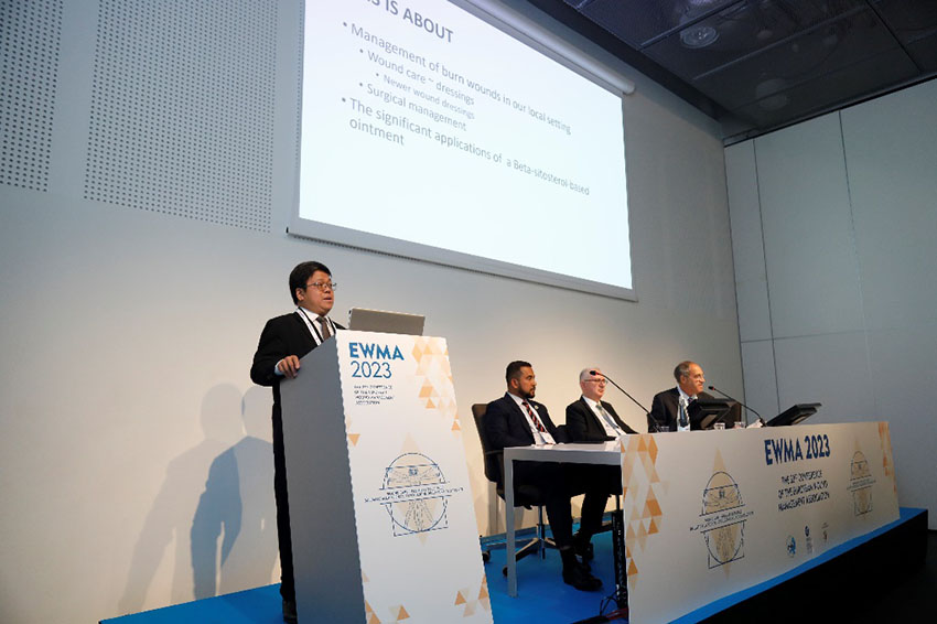 除演講外,在海報展示中,來自蒙古Venera VIP Clinic醫(yī)院的Solongo Oyunbileg,馬來西亞Raja Perempuan Zainab II醫(yī)院的Mohd Zurairie,以及馬來西亞皇后伊麗莎白醫(yī)院的Jiann Wen Yap,分別提交了題為“利用濕潤燒傷膏治療傷口:1例病例報告”、“聯(lián)合應用濕潤燒傷膏與硅膠非粘性泡沫敷料治療小兒下肢遠端創(chuàng)傷” 、“使用濕潤燒傷膏治療壓力性損傷”的電子海報, 深受現(xiàn)場參會者的好評。