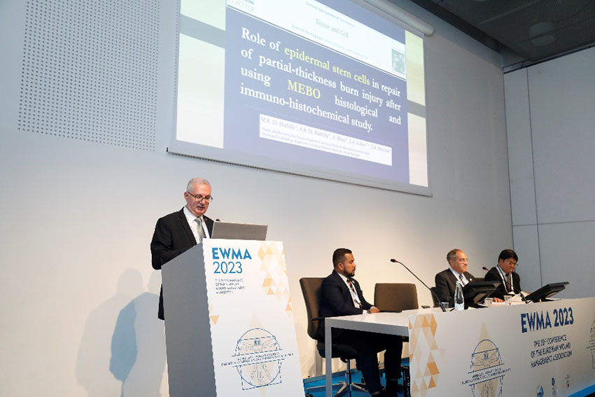 5月4日下午,在大會主題演講中,埃及亞歷山大大學外科教授Mahmoud Sakr以“再生醫(yī)療技術在開放性傷口治療中的療效評估”為題,分享了應用再生醫(yī)學技術治療各類開放性創(chuàng)面的寶貴臨床經(jīng)驗。