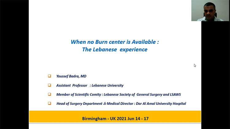 首先,來(lái)自黎巴嫩DarAlMal大學(xué)醫(yī)院的Youssef Badra醫(yī)生進(jìn)行了題為《當(dāng)沒(méi)有燒傷中心時(shí):黎巴嫩經(jīng)驗(yàn)》(When No Burn Center is Available: The Lebanese Experience)的演講,分享了濕潤(rùn)燒傷膏用于多種創(chuàng)面的治療效果。在演講中,他特別強(qiáng)調(diào),在很多沒(méi)有手術(shù)條件的情況下,濕潤(rùn)暴露療法是一種有效且可靠的治療方法。