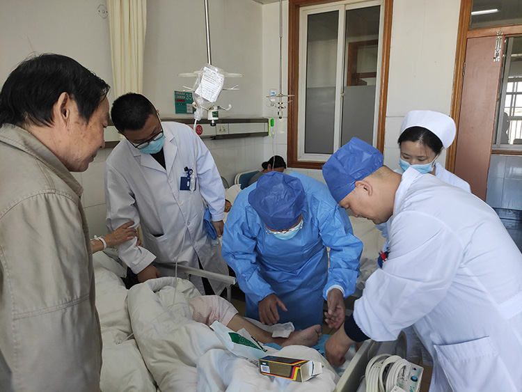10月22日,應(yīng)鳳凰縣民族中醫(yī)院陳彥均醫(yī)生的邀請(qǐng),《中國(guó)燒傷創(chuàng)瘍雜志》編委、燒傷創(chuàng)瘍?cè)偕t(yī)療技術(shù)臨床專家金黨軍,到醫(yī)院會(huì)診一例壞死性筋膜炎患者并做了學(xué)術(shù)交流,金教授詳細(xì)講解了再生醫(yī)療技術(shù)清創(chuàng)原則和規(guī)范作用,并贊揚(yáng)了陳醫(yī)生不辭辛苦積極在基層應(yīng)用和宣傳再生醫(yī)療技術(shù)造福湘西百姓的精神,得到了在場(chǎng)醫(yī)護(hù)人員和患者的一致認(rèn)可。