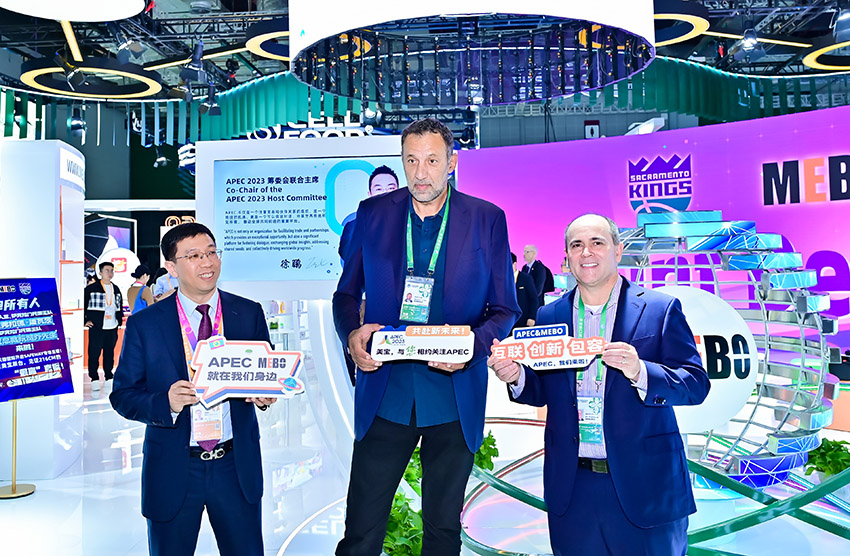 薩克拉門托國(guó)王隊(duì)運(yùn)營(yíng)總裁阮賀喬 (John Rinehart ) 以及NBA名人堂、薩克拉門托國(guó)王隊(duì)球星弗拉德·迪瓦茨(Vlade Divac)還專程到訪美寶展臺(tái),全程打卡,品Safeway美食、試IMEBO產(chǎn)品,還特意品嘗了美寶APEC專供香油,可以喝的香油;迪瓦茨還在美寶迷你球場(chǎng)秀球技,APEC專區(qū)為APEC2023送上祝福;還進(jìn)入了天貓國(guó)際在美寶展臺(tái)進(jìn)行的北美特大食品零售巨頭Safeway的品牌專場(chǎng)直播間進(jìn)行了2米16版的“最高”直播!新奇元素,空前人氣,爭(zhēng)相合影,引爆了美寶展臺(tái),帶給了進(jìn)博獨(dú)一無(wú)二的新鮮氣息。